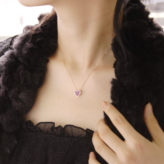 アメジスト ピンクトルマリン ロードライトガーネット ネックレス 18k K18ピンクゴールド18金 レディース ダイヤモンド ハート ペンダント 1月/2月/10月誕生石 「ラブ・ラッシュ」 天然石 誕生日 プレゼント 彼女 娘 妻 嫁 女性/製造オーダー品 約20日間納期