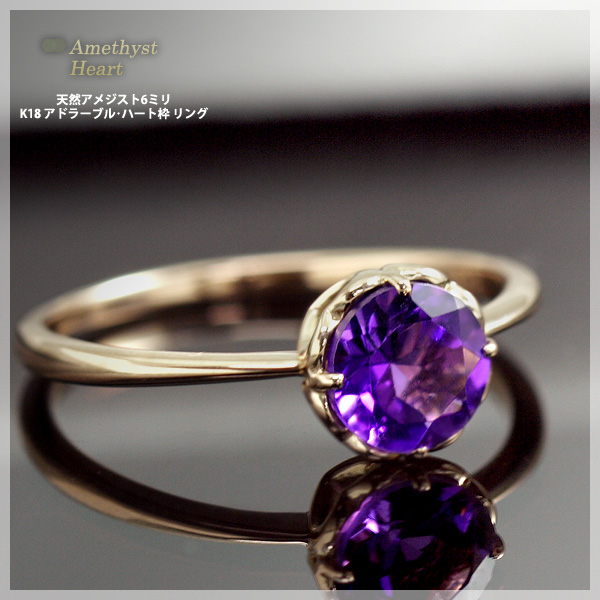 2月誕生石 アメジスト(6ミリ) リング(指輪)「アドラーブル・ハート」 K10ピンクゴールド(K10PG) 国産 日本製/製造オーダー品 約20日間納期