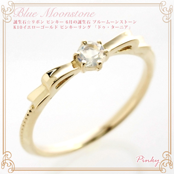 ピンキーリング 18k 6月誕生石 ブルームーンストーン リボンモチーフ シンプル 18金 10k K10/K18イエローゴールド 指輪 リングサイズ マイナス号数対応 0号 1号 2号 3号 4号 5号 6号から15号 バースディピンキー「ドゥ・ターニア」/製造オーダー品 約20日間納期
