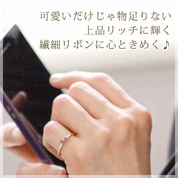 ![]() ※こちらは「7月の誕生石ルビー リボンピンキーリング K10PG/K18PG」のご購入ページです。 各画像クリックで商品ページにジャンプします。 |