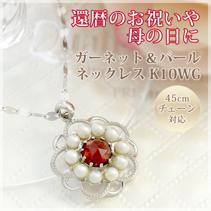 還暦祝い 古希祝いや母の日におすすめ。長めのチェーン45cm&着脱しやすい「楽わ」採用!アメジスト ローズカット&淡水パール ネックレス ペンダント【K10ホワイトゴールド(K10WG)】「ディペール・コリエ」【送料無料】 国産 日本製/製造オーダー品 約20日間納期